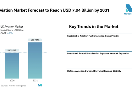 UK Aviation Market Forecast to Reach USD 7.94 Billion by 2031, Driven by Sustainable Fuel Adoption, Defence Programs, and Passenger Recovery – Mordor Intelligence